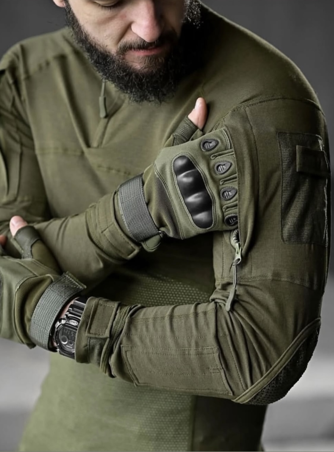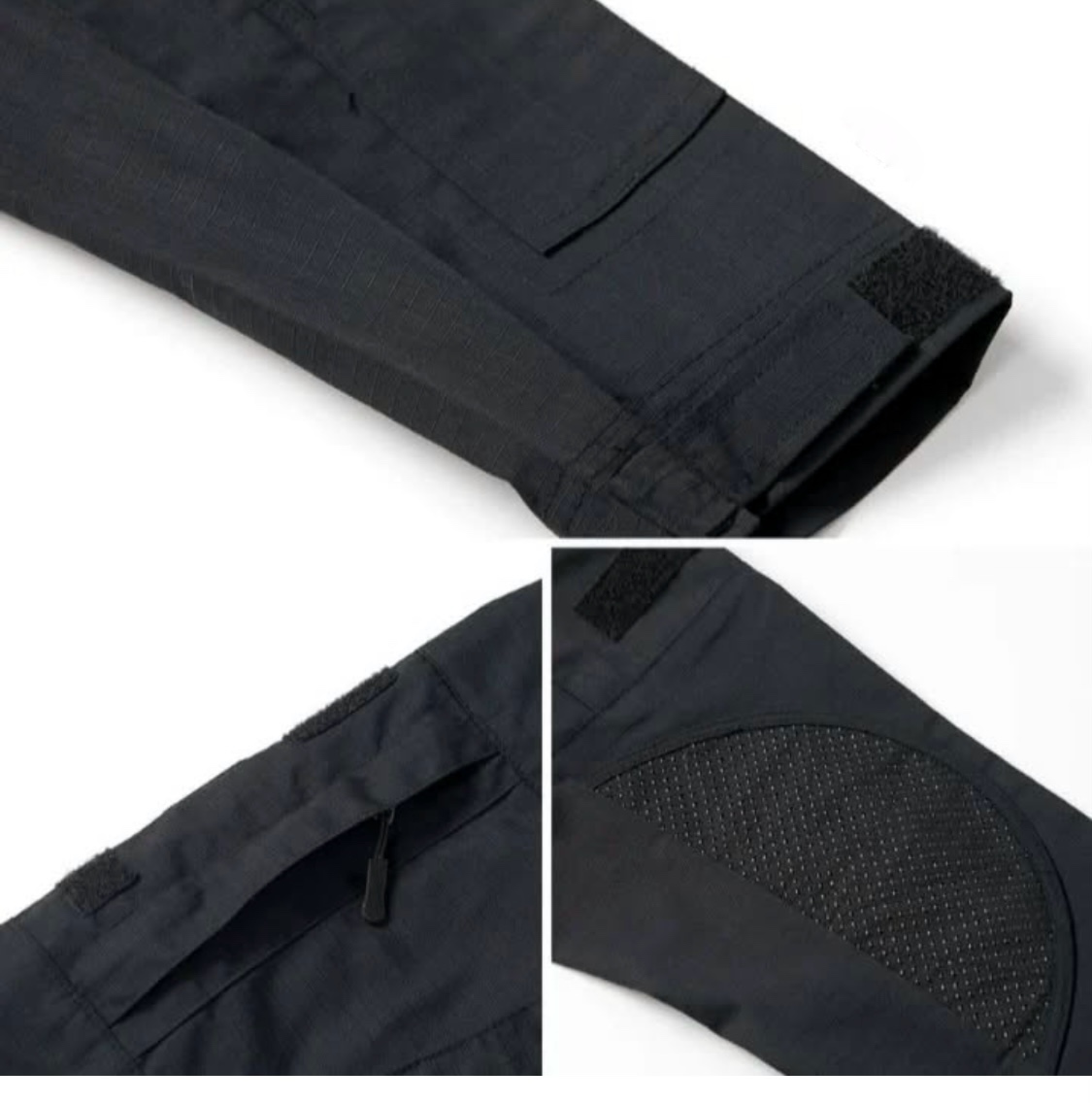 آستین‌ها از پارچه ضخیم تاکتیکال مشابه یونیفرم‌های نظامی ساخته شده‌اند.