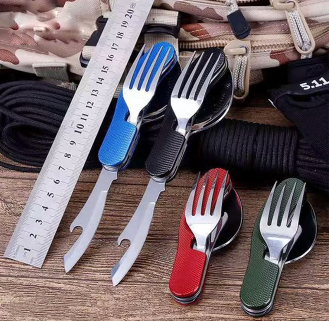 - چهار منظوره : قاشق ، چنگال ، کارد و دربازکن تاشو