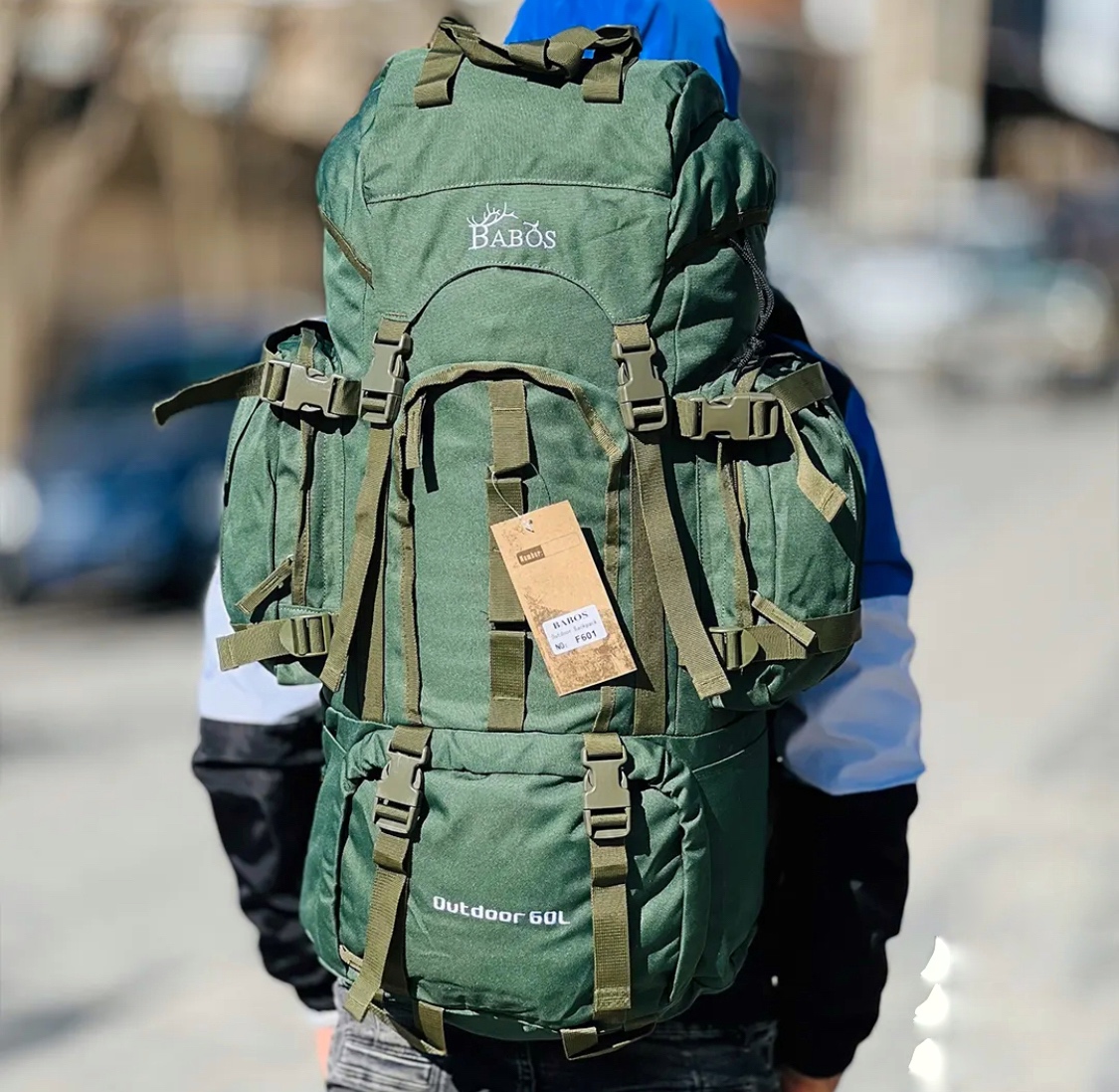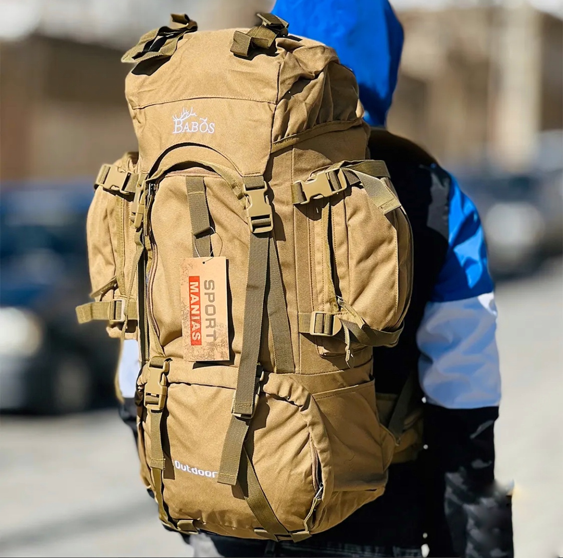کوله پشتی تاکتیکال 60 لیتری بابوس با بدنه برزنتی آب‌گریز، شاسی فلزی، بند ارگونومیک و کاور باران — انتخاب ایدئال برای کوهنوردی، کمپینگ و ماجراجویی‌های طولانی. ظرفیت زیاد، دوام بالا و طراحی تاکتیکال حرفه‌ای.